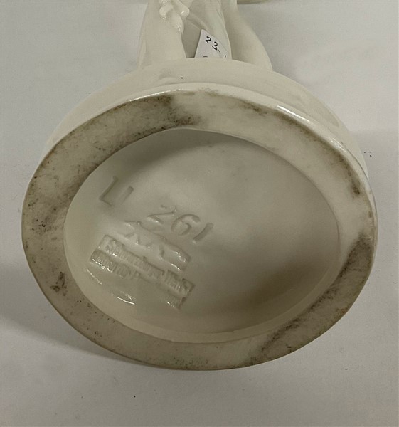Figura in porcellana bianca raffigurante ballerina. Germania, anni '30. Marchio della manifattura sotto la base. (h cm 33) (lievi difetti)