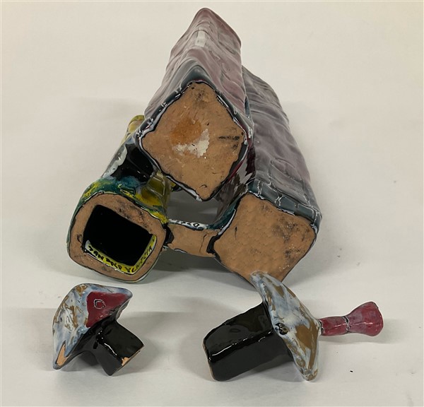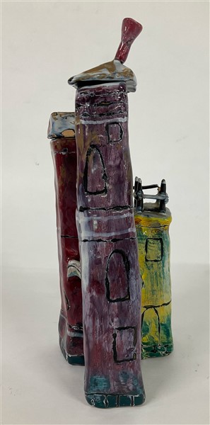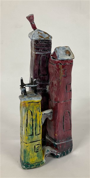 Scultura in terracorra dipinta in policromia raffigurante torri. Venezia, anni '50. (h cm 26,5) (difetti e mancanze)