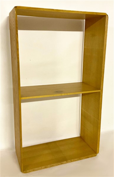 Libreria in legno chiaro massello e compensato. Anni '80. (cm 76x133x38) (lievi difetti)