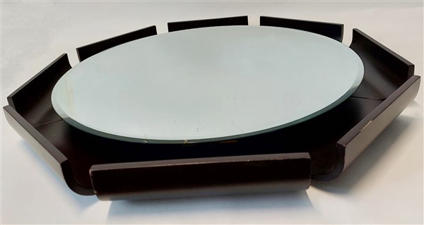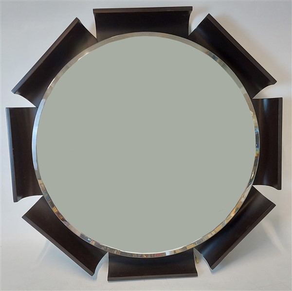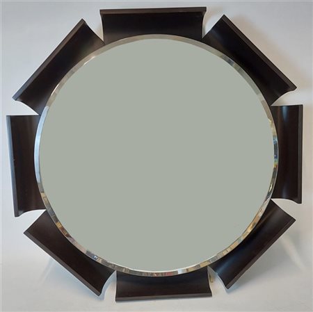 Specchio rotondo con cornice a petali in legno laccato marrone. Italia, anni '70. (d cm 69) (lievi difetti)