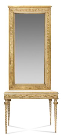 TAVOLO CON SPECCHIERA Tavolo da muro con specchiera, epoca Luigi XVI, fine...