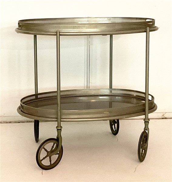 Carlo Mozzoni Carrello portavivande in metallo argentato e legno con due ripiani