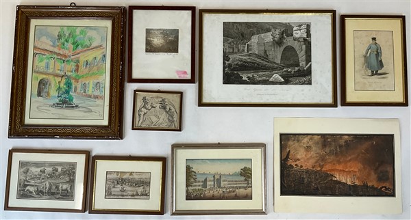 Cartone contenente numerosi incisioni e riproduzioni di epoche differenti (difetti)