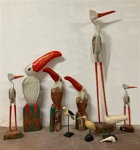 Lotto composto da otto sculture in legno policromo raffiguranti volatili (difet
