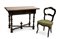 Scrittoio in noce, Piemonte, inizi XVIII sec., a due tiretti, gambe a rocchetto raccordate da traverse. Difetti sul piano e sulla fodera posteriore. Lo scrittoio è accompagnato da una sedia in legno ebanizzato, epoca Luigi Filippo, seconda metà XIX sec.