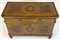 Cassettone impiallacciato e intarsiato in legni vari a rosoni entro riserve, fr