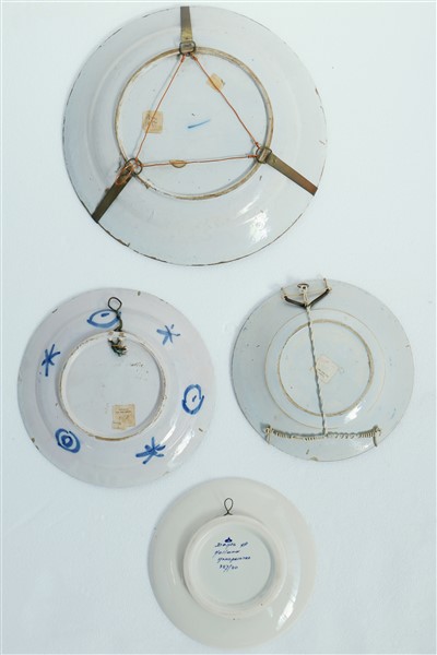 Manifattura di Delft, secolo XVIII. Lotto composto da tre diversi piatti in mai