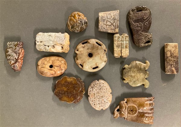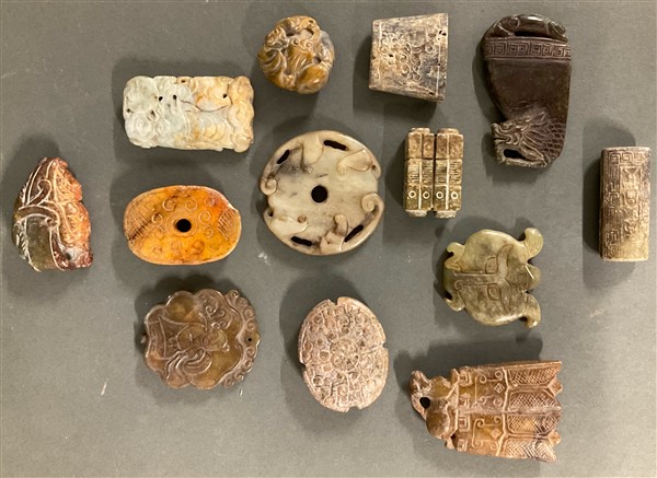 Lotto composto da tredici oggetti diversi in pietra dura. Cina, secolo XX (difetti)