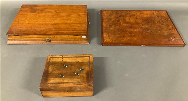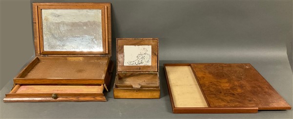 Lotto composto da due cofanetti con specchio interno e un contenitore con coperchio radicato scorrevole (difetti)