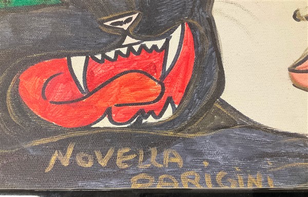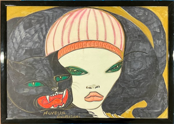 Novella Parigini "Ritratto di donna con gatto" tecnica mista su tela (cm 48x68)