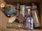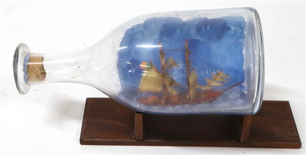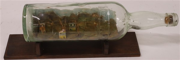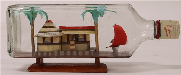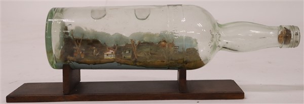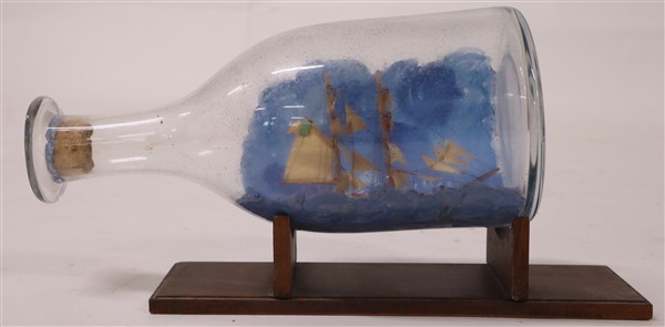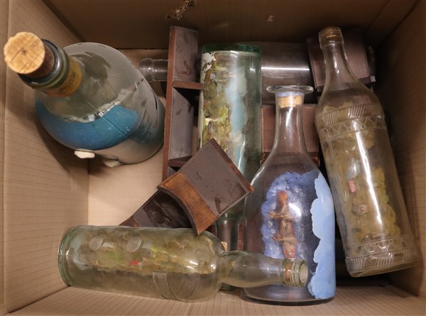 Cartone contenente numerosi velieri e paesaggi entro bottiglie di vetro (difetti)