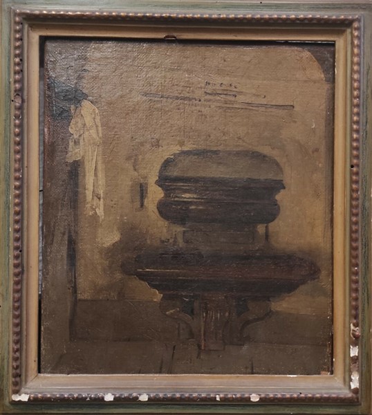 Ignoto del secolo XIX "Interno con fontana" olio su carta applicata a tela (c