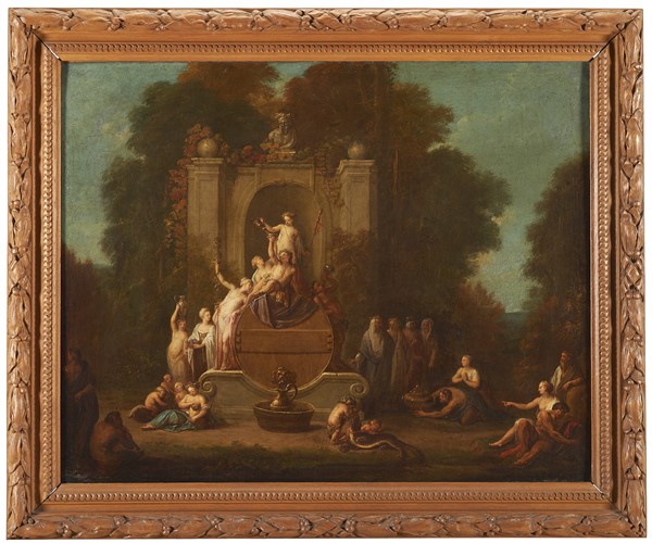 Artista francese del secolo XVIII "Trionfo di Bacco " Olio su tela, cm 65x81,