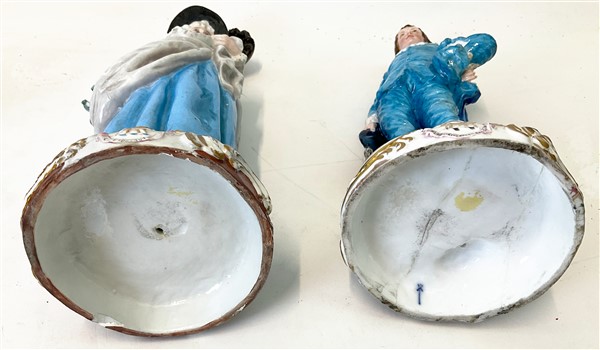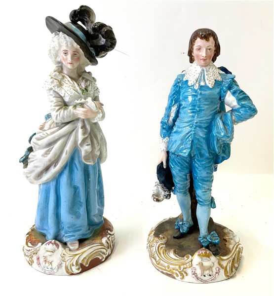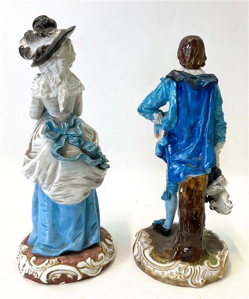Manifattura del secolo XIX. Gentiluomo e gentildonna, coppia di figure in porce