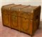 Baule da viaggio in legno pelle e cuoio, cerniere e rinforzi in ottone, marcato