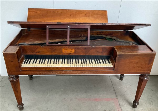 Fortepiano a tavolo in legni vari, di produzione bergamasca.