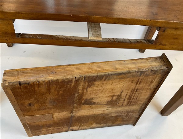 Tavolo in noce con cassetto nella fascia (cm 153x83x83) (difetti)