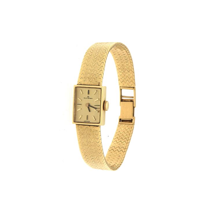 BUCHERER Orologio gioiello anni '60 19x15 Cassa di forma in oro giallo con...
