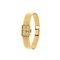 Cassa di forma in oro giallo con bracciale integrato lavorato a tessuto; quadrante con indici applicati Movimento a carica manuale