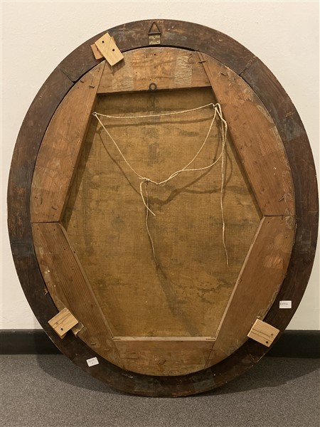 Scuola del secolo XVIII "Capriccio architettonico" olio su tela ovale (cm 76x61