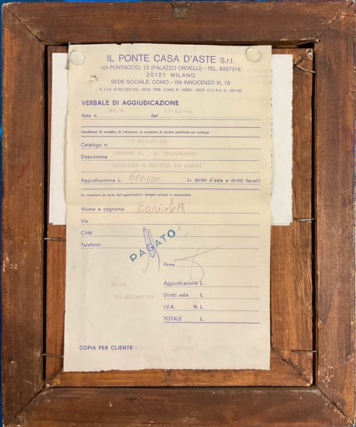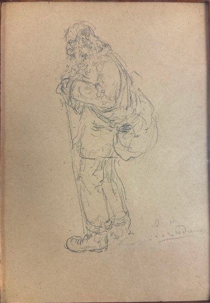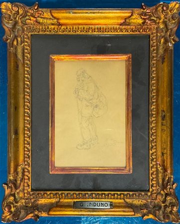 Gerolamo Induno "Il vagabondo" carboncino su carta (cm 16x11) Firmato in basso