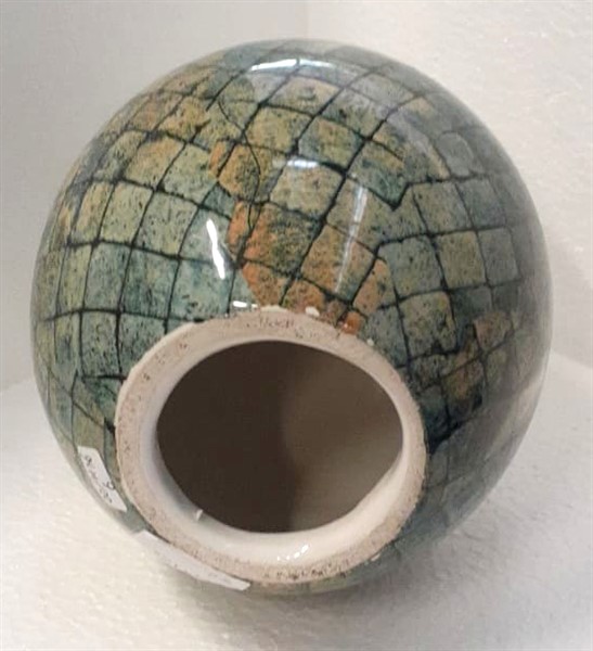 Ignoto, scultura in ceramica a forma di uovo con decoro a mosaico nei toni del