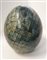 Ignoto, scultura in ceramica a forma di uovo con decoro a mosaico nei toni del verde. (h cm 15)