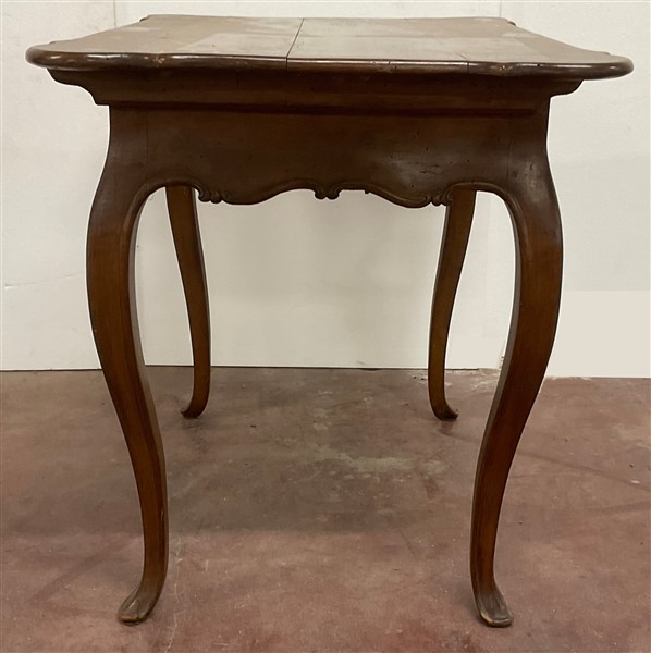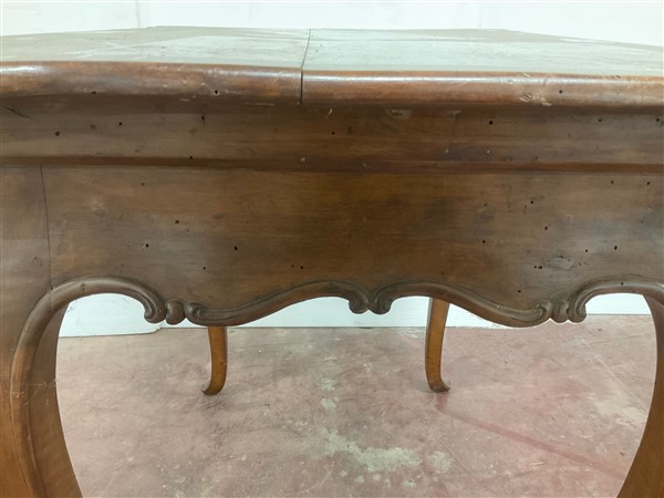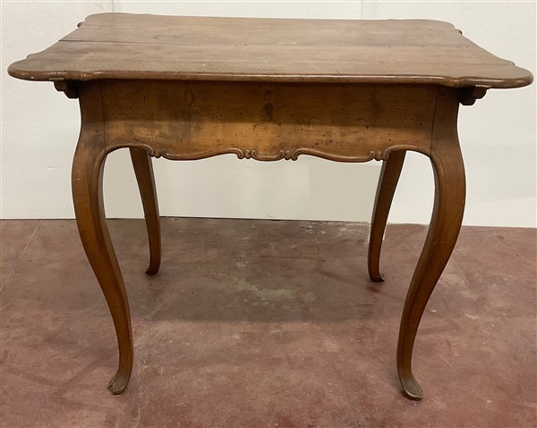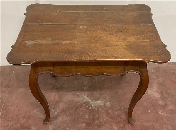 Antico tavolo scrittoio in noce con piano di forma sagomata e cassetto sottopiano. Gambe sagomate. Piemonte secolo XVIII (cm 93x78x66) (difetti)