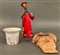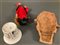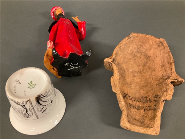 Lotto composto da due sculture in terracotta e una tazzina in ceramica (difetti