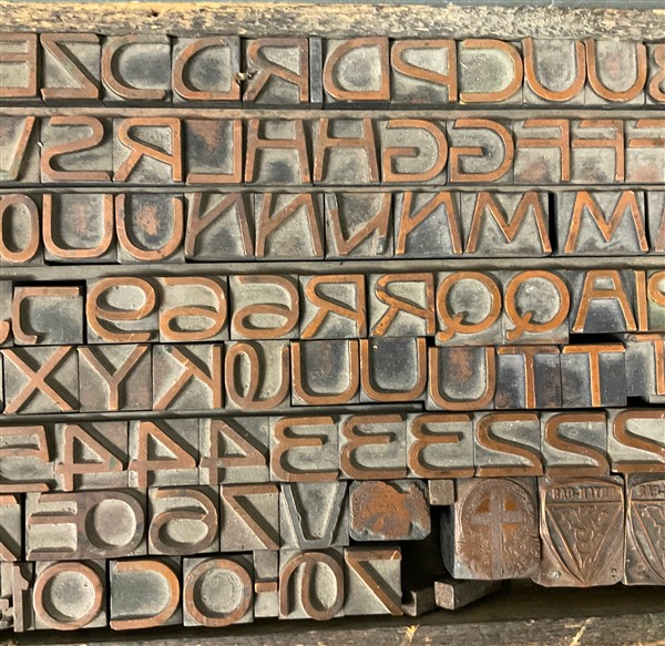 Lotto composto da due scatole contenenti caratteri per stampe unite a una scato