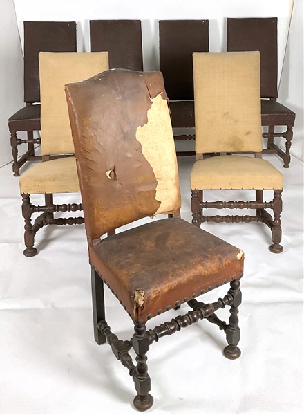 Lotto 1218 | Lotto composto da sette antiche diverse sedie in noce con gambe anteriori e tra