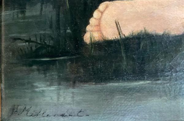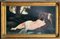 Ignoto del XX secolo "Donna distesa e cane" olio su tela (cm 63,6x110) Firma