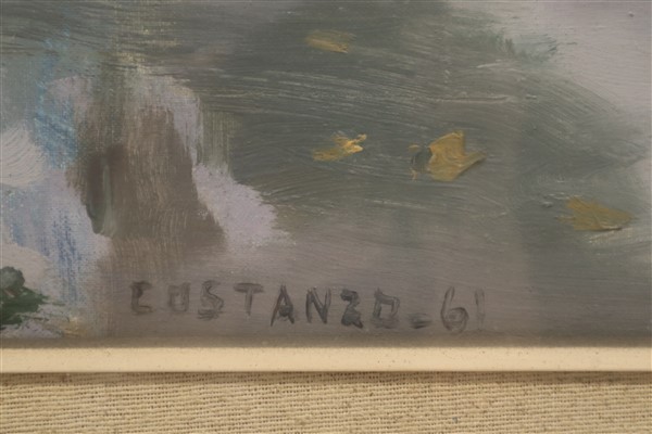 Ignoto del secolo XX "Paesaggio fluviale" 1961 olio su tela (cm 80x60) Firmato