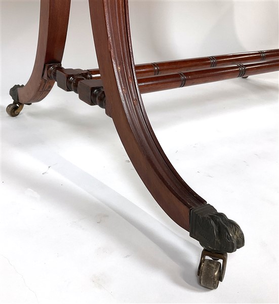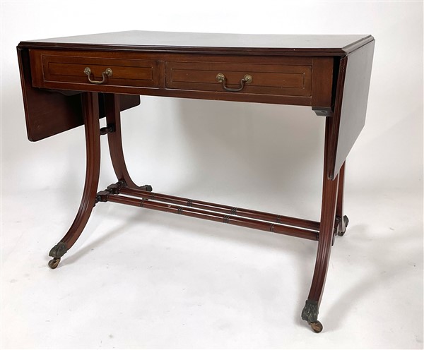 Lotto 1238 | Tavolo scrittoio ad alette. Quattro cassetti sottopiano, gambe mosse riunite da