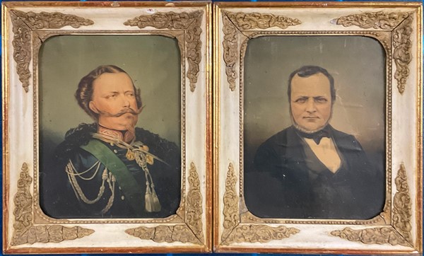 Lotto 1260 | Lotto composto da due oleografie raffiguranti i ritratti di Cavour e Re Umberto