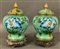 Coppia di vasi con coperchio in smalto cloisonnè con decori di fiori su basi in