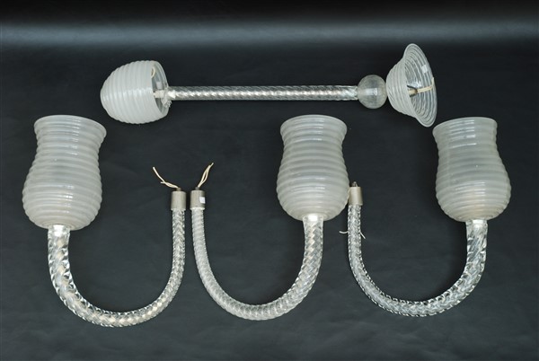 Venini, Murano, anni '30 del sec. XX, lampadario a tre luci, con bracci in vetr