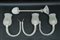 Venini, Murano, anni '30 del sec. XX, lampadario a tre luci, con bracci in vetro trasparente e coppe portalampada in vetro a filigrana bianca (difetti)