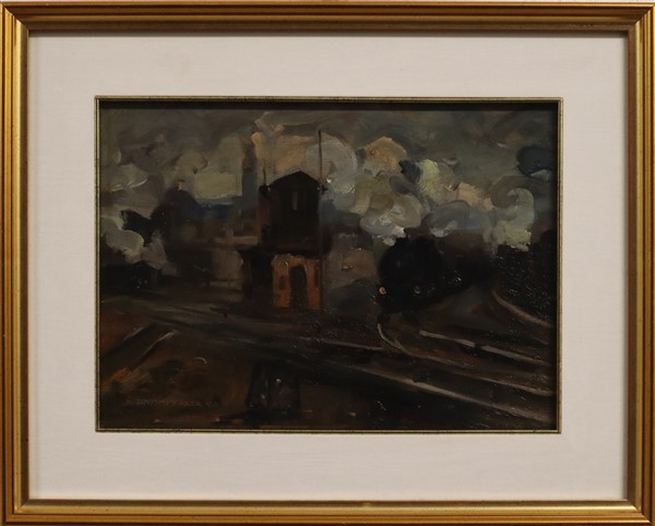 Ignoto del secolo XX "Il passaggio del treno" 12.2.1936 olio su compensato (cm