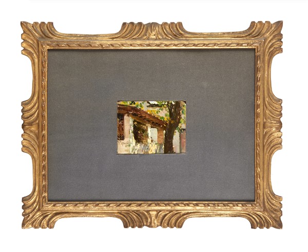 Raffaello Sorbi "Finestre" olio su tavola (cm 6x7,5) Firmato in basso a sinistr