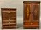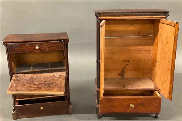 Lotto 1284 | Due modelli di armadio secretaire in legno decorati a finti intarsi in ottone i