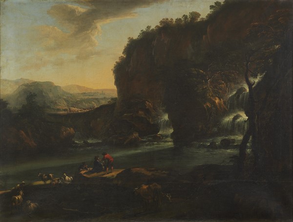 "Paesaggio fluviale con figure e armenti