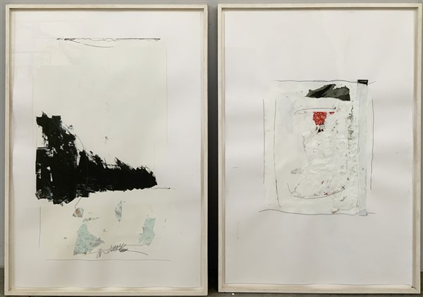 Ignoto "Senza titolo" Due composizioni su carta (cm 96x66) In cornici (difetti)