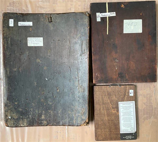 Lotto composto da tre icone su legno di soggetto e misure diverse (max cm 32x23
