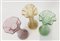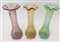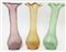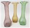 Lotto di tre vasi in vetro trasperente ametista, verde e giallo soffiati in sta