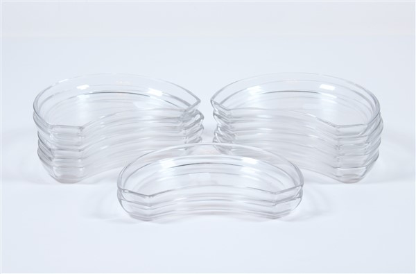 Manifattura Val St.Lambert, dodici antipastiere a mezzaluna in cristallo (difetti)