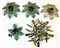 Lotto composto da cinque diverse lampade da parete in metallo in parte policromo e dorato a foggia a foglie, a una luce e uno a quattro luci (difetti)