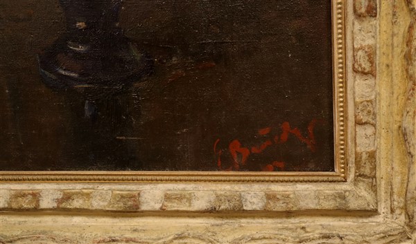 Ignoto del secolo XX "Composizione con vasi di fiori" olio su cartone (cm 90x
