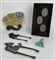Lotto composto da diversi oggetti tra cui tre placchette ovali in pietra dura in cornice, una figuretta in turchese ed altri oggetti diversi