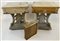 Due comodini di forma mossa ad un cassetto in legno intagliato, dipinto e dorato a mecca, con sostegno a volute e palmette (cm 41x53,5x31) (gravi difetti e rotture)
